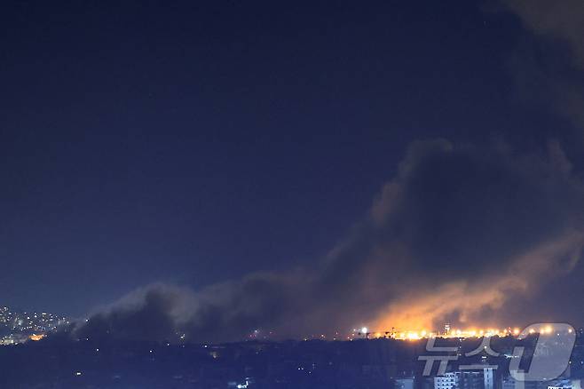 이스라엘 포격 받아 검은 연기 덮인 베이루트 외곽