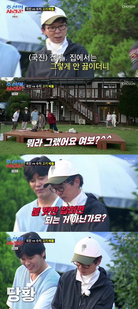 이어 굽던 고기를 확인하자 불이 약해 고기가 거의 익지 않았다. 강수지가 "프라이팬에 구울까요?"라고 묻자 김국진은 "아니다. 그런 소리 다시는 하지 마라"라며 거절했다.