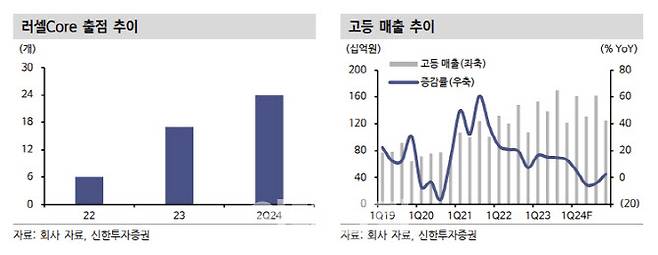 주지은 연구원은 “매출 대비 영업이익 부진은 러셀코어 확장에 따른 고정비 증가와 저수익성의 단과학원 수요 증가에 기인한다”며 “다만 연내 러셀코어 추가 출점은 없어 재무 건전성 확보 노력은 긍정적”이라고 진단했다.