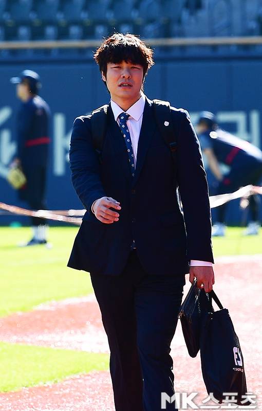 민병헌 위원 ‘깔끔한 정장 패션으로 야구장 출근’ [MK포토]