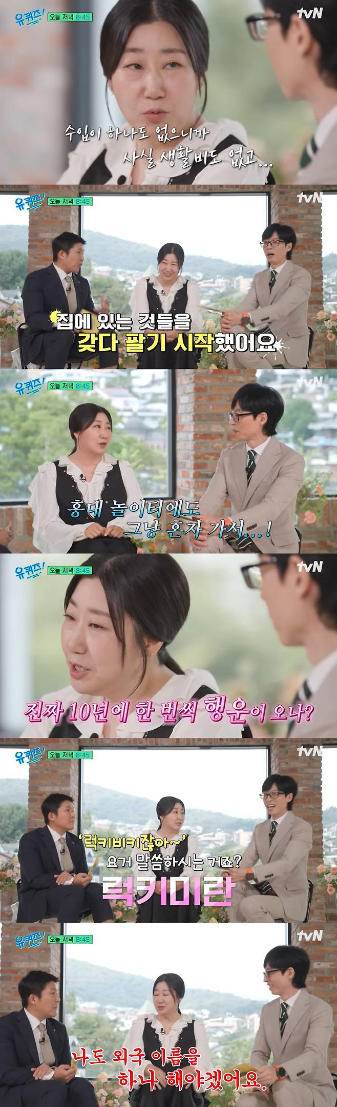 2일 tvN '유 퀴즈 온더 블럭' 유튜브 채널에는 '숭실대 앞에 돗자리를 폈던 '럭키미란'이 밝히는 10년의 법칙'이라는 제목의 영상이 게재됐다.