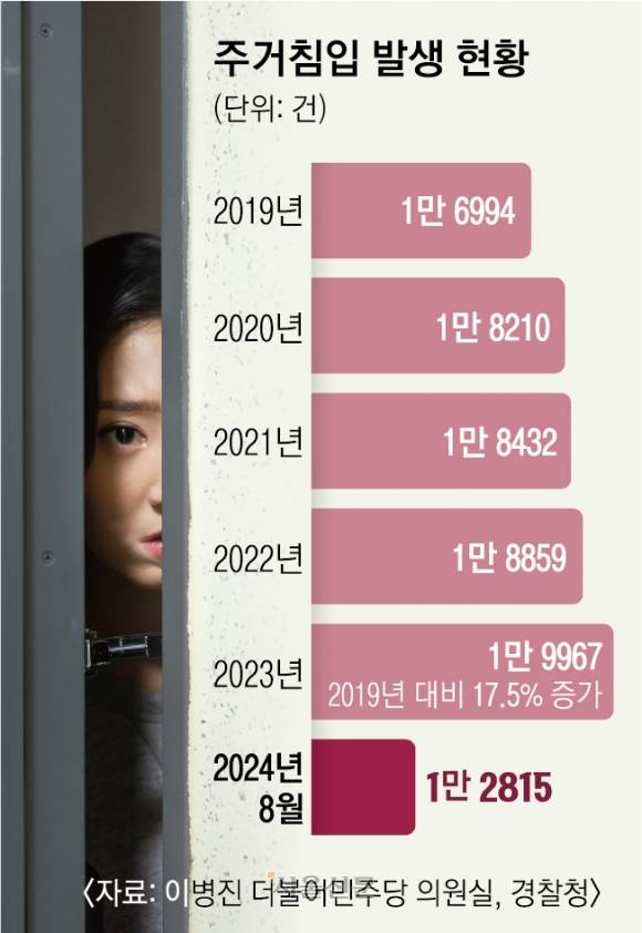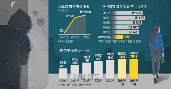 주거침입 범죄가 해마다 늘어나면서 나홀로 가구의 공포가 커지고 있다. 1인가구는 다인 가구보다 주거침입과 같은 범죄에 대응하기 어려운 데다 범죄 표적으로 노출되기 쉽다.