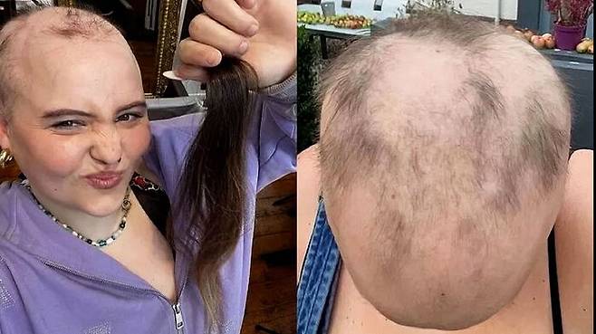 여성은 이왕 머리가 빠진 김에 머리카락을 기부하려고 남은 머리카락을 모두 밀어버렸다는데요.