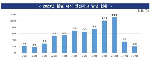 특히 월별 발생현황은 10월이 111건(17%)으로 가장 많았고, 9월 101건(15.5%), 8월 75건(11.5%) 등으로 가을철에 주로 많이 발생했다.