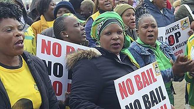 ▲ 남아프리카공화국에서 흑인 여성을 살해해 돼지우리에 버린 백인 농장주에 대한 보석을 허용하지 말라는 시위가 벌어지고 있는 모습