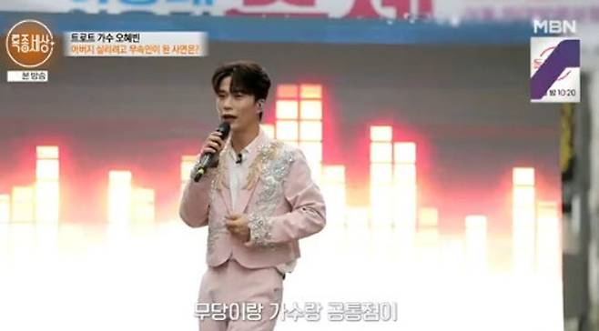 또 이날 방송에선 아버지의 납골당을 찾은 모자의 모습이 공개됐다. 무속인이 된 아들이 꿈을 찾기를 바랐다는 아버지는 지난해 투병하다 세상을 떠났다고. 오혜빈은 “(아빠를 보면) 안 아픈지 먼저 여쭤볼 것 같다. 그리고 걱정하지 말라고 말하고 싶다. 아빠가 꾸던 꿈, 제가 지금 가지고 있는 꿈, 가수라는 공통된 꿈이었다. 그 꿈을 이루고 정말 훌륭한 사람이 돼서 보여주고 싶다고 얘기하고 싶다”라고 진심을 전했다. 이에 어머니를 향해 “열심히 하겠다”라고 다짐했다.