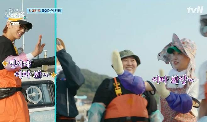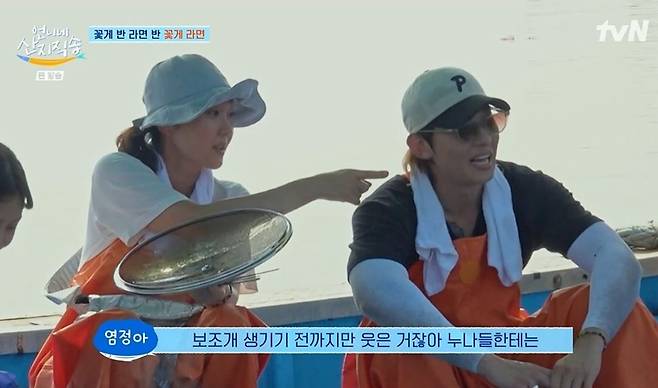 염정아는 꽃게 작업까지 능숙하게 해 눈길을 끌었다. 꽃게가 무섭지 않다던 고민시는 "눈 마주쳤다"라며 바닷일에 서툰 모습을 보였다. 염정아는 실수를 하는 고민시를 도와주었고, 다시금 찬찬히 알려주었다. 염정아 선글라스를 통해 자신의 모습을 확인한 고민시는 "이런 노동은 처음이라"라고 말했다.