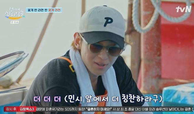 그물을 끌어올리기로 한 덱스는 속도를 올렸고, 선장님은 "천천히 해. (힘들어) 죽겠어"라고 말해 웃음을 안겼다. 덱스는 "돈 벌어야 한다"라며 선장님에게 계속 일거리를 투척했고, 선장님은 "들어가면 큰일 났다. 다른 배들도 너한테 일 시키려고 할 거 아니냐. 배 하나 주겠다. 체질이다"라고 설득했다. 덱스는 만나는 사람이 없다고 했지만, 선장님은 "만나는 사람 없다더니 결혼한다더라"라고 말하기도.