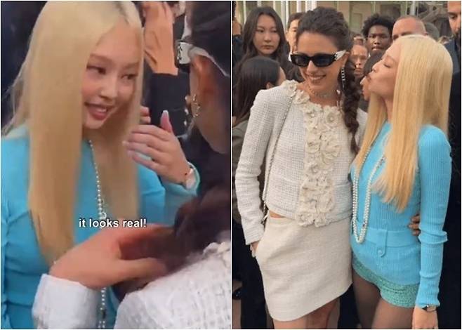 제니는 지난 1일(현지시간) 프랑스 파리에서 열린 명품 브랜드 '샤넬' 패션쇼에 참석했다. 이날 제니는 긴 금발 스트레이트 헤어에 하늘색 의상을 입고 등장했다.