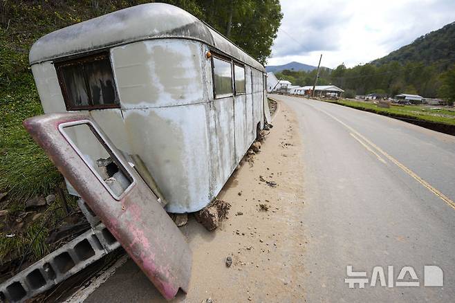 허리케인 헬렌 여파, 홍수에 떠밀려간 트레일러