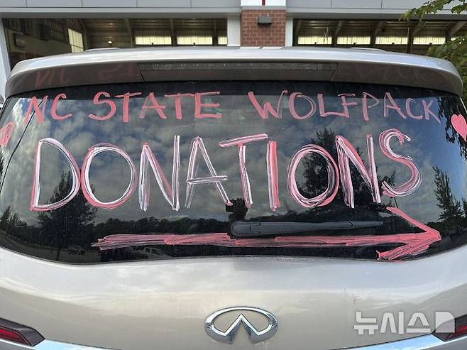 [롤리=AP/뉴시스] 지난 2일(현지시각) 미 노스캐롤라이나주 롤리에서 허리케인 헬렌 피해자들을 돕기 위한 자선 행사가 열려 한 자동차 뒷유리에 도움을 요청하는 문구가 쓰여 있다. 미국 남동부를 휩쓴 허리케인 헬렌으로 인한 사망자가 200명을 넘어선 것으로 집계됐다. 2024.10.04.