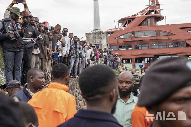 [고마=AP/뉴시스] 3일(현지시각) 콩고민주공화국(DRC) 북키부주 고마 인근 키부 호수에서 여객선이 침몰한 후 사람들이 항구에 모여 있다. 현지 당국은 승객 278명을 태운 여객선이 전복해 최소 87명이 숨졌으며 정확한 사망자 수를 파악하는 데 적어도 3일은 더 걸릴 것이라고 밝혔다. 2024.10.04.
