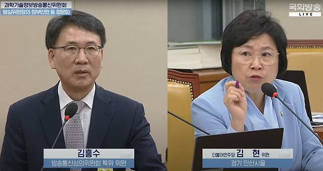 최민희 국회 과학기술정보방송통신위원장 : "민원을 내기 전에 방심위에 민원을 내기 전후로 류희림 위원장이나 대통령실 관계자 구체적으로 김대남 등과 연락하거나 만난 사실이 있으십니까?"