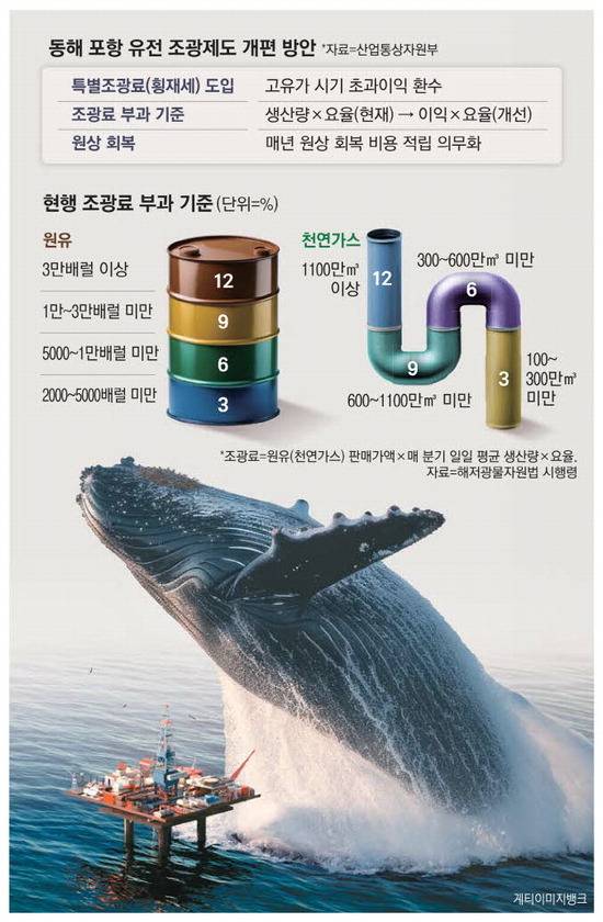 산업통상자원부가 대왕고래 프로젝트 조광료 요율을 최고 33% 올리는 시행령 개정안을 4일 입법예고 한 것으로 확인됐다.