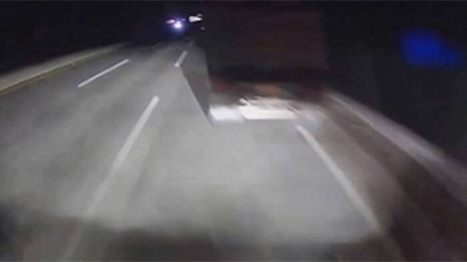 블랙박스 차량은 화물차였는데 3차로에서 아무 등도 켜지 않고 서있던 덤프트럭과 충돌하고 말았습니다.