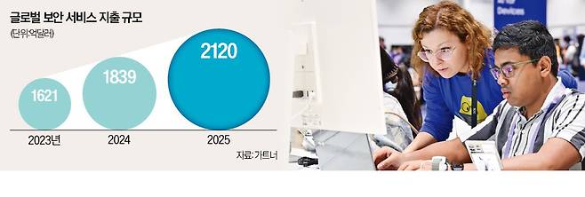 4일 시장조사기관 가트너에 따르면 세계 정보 보안서비스 시장은 올해 1839억달러(약 245조원)에서 내년 2120억달러(약 283조원)로 15.1% 증가할 것으로 전망됐다. 가트너는 대규모언어모델(LLM) 등 생성형 AI가 전자기기에 적용되면서 기업들의 보안 소프트웨어 관련 투자가 큰 폭으로 늘어날 것으로 내다봤다. LLM은 외부 데이터센터에 있는 서버를 활용하기 때문에 언제든 사이버 공격을 받을 수 있다는 이유에서다.