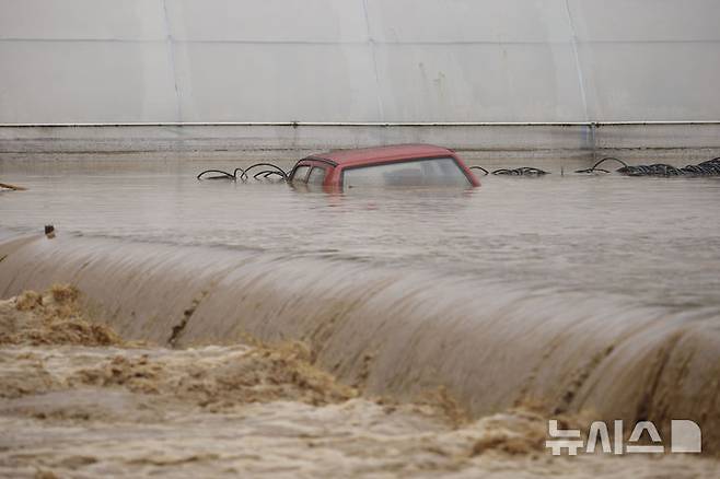 [키셀랴크=AP/뉴시스] 4일(현지시각) 보스니아 북부 키셀랴크 마을, 아파트 건물 외부에 있던 자동차 한 대가 폭우로 인한 홍수로 물에 잠겨 있다. 2024.10.04.