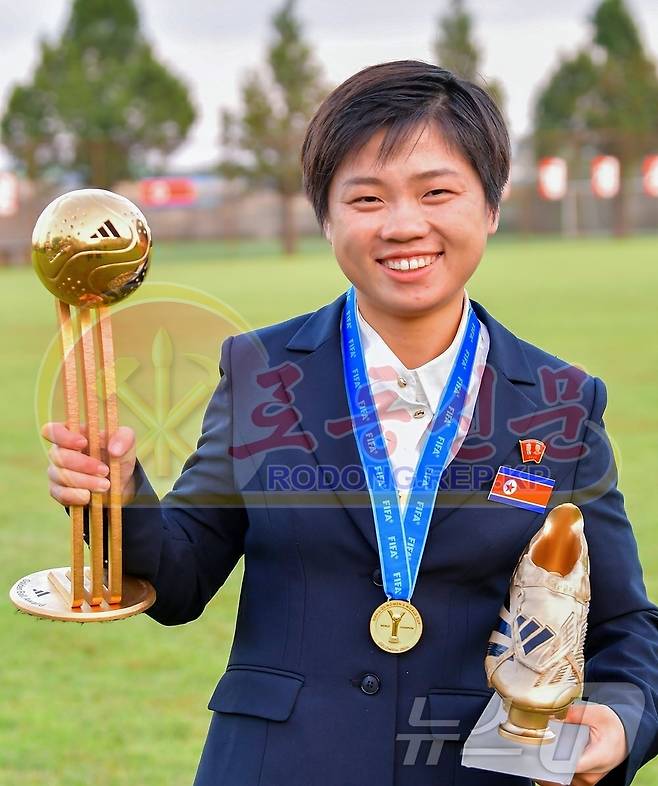 (평양 노동신문=뉴스1) = 북한 노동당 기관지 노동신문은 5일 국제축구연맹(FIFA) 20세 이하 (U-20) 여자 월드컵에서 최우수 선수상과 최고득점자상을 받은 최일선 선수와 팀을 승리로 이끈 리성호 책임감독의 공로를 김정은 노동당 총비서가 높이 치하했다고 보도했다.