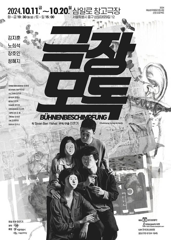 팔레스타인-이스라엘 출신 시반 벤 이샤이의 희곡을 이은기 연출이 무대에 올린다. 연극 형식을 파괴한 페터 한트케의 ‘관객모독’을 떠올리게 하면서도, 그와는 다른 독창적인 방식으로 극장의 권력 구조와 젠더 위계, 연극 생태계를 예리하게 파헤치는 작품이다. 베를린 막심 고리키 극장 예술감독의 권력 남용 사건을 주요 모티브로 삼아 극장 내 권력관계를 더욱 깊이 있게 탐구한다. 배우 김지훈, 노희석, 장호인, 정혜지 등이 출연한다.