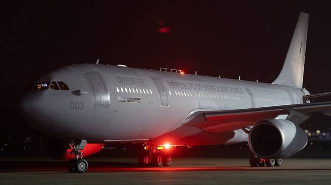 이들을 태운 공군의 다목적 공중급유 수송기 KC-330 '시그너스'가 오늘(5일) 낮 12시 50분, 성남 서울공항에 착륙했습니다.
