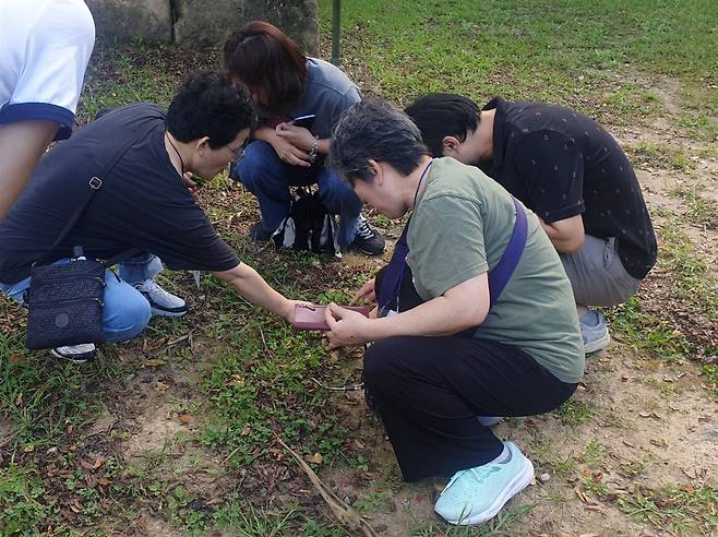 정조가 현판 글씨를 직접 썼다고 해서 어서각(御書閣)이라는 이름이 붙은 표충사를 돌아보고 나오는데 길동무들이 풀밭 위에 옹기종기 모여 앉았다. 알고 보니 네잎클로버를 찾는 것이다. 세상에, 그곳은 그야말로 네잎클로버 밭이었다.