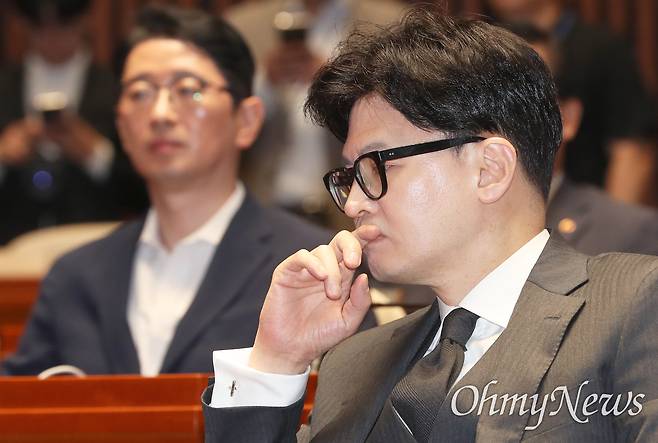 | ▲ 한동훈 국민의힘 대표가 4일 오전 서울 여의도 국회에서 열린 의원총회에 참석해 있다. |