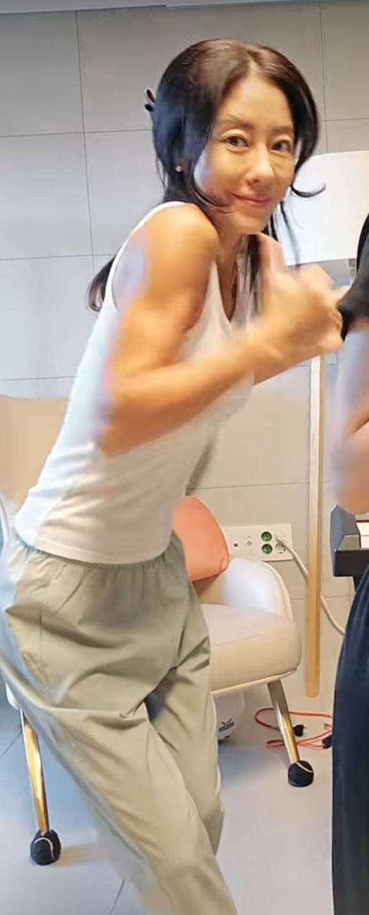 이지현은 딸과 함께 영상을 찍었는데, 민소매를 입은 이지현은 운동으로 다져진 남다른 몸매를 뽐냈다. 남들과는 다른, 누구보다 부지런한 모습으로 운동을 하는 이지현은 잠깐씩 움직이는 모습으로도 탄탄한 근육의 음영을 자랑해 시선을 끌었다.