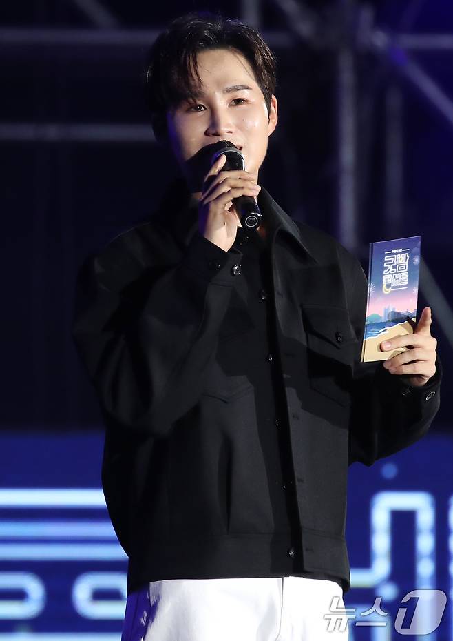 (부산=뉴스1) 권현진 기자 = 가수 김희재가 5일 부산 해운대구 해수욕장 특설 무대에서 열린 2024 K-뮤직 시즌 '굿밤 콘서트 in 부산'에 출연해 진행을 하고 있다. 2024.10.5/뉴스1