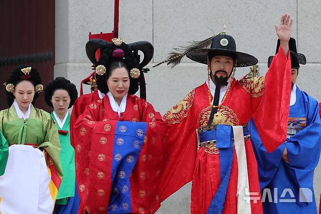 [서울=뉴시스] 김근수 기자 = 6일 오전 서울 종로구 경복궁 인근에서 2024 정조대왕 능행차 공동재현 행사가 열리고 있다. 2024.10.06. ks@newsis.com