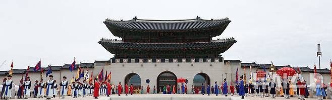 [서울=뉴시스] 김근수 기자 = 6일 오전 서울 종로구 경복궁 인근에서 2024 정조대왕 능행차 공동재현 행사가 열리고 있다. 2024.10.06. ks@newsis.com