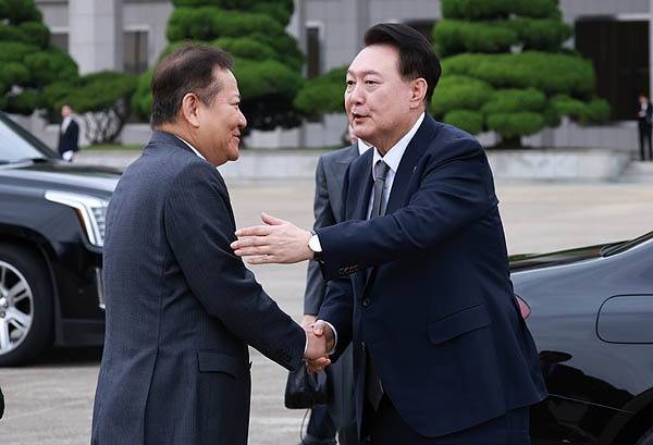 | ▲ 윤석열 대통령이 필리핀, 싱가포르 국빈 방문 및 라오스 아세안 정상회의에 참석하기 위해 6일 성남 서울공항에 도착, 환송나온 국민의힘 추경호 원내대표와 악수하고 있다. |