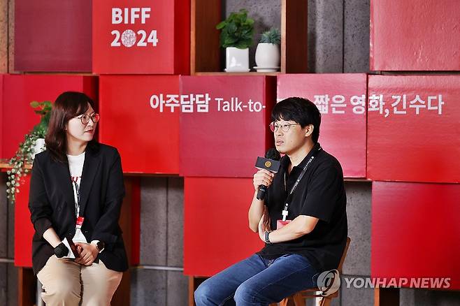 (부산=연합뉴스) 진연수 기자 = 6일 오후 부산 해운대구 영화의 전당 아주담담라운지에서 열린 아주담담 '한국 영화의 오늘 - 비전1'에서 박송열 감독이 질문에 답하고 있다. 2024.10.6