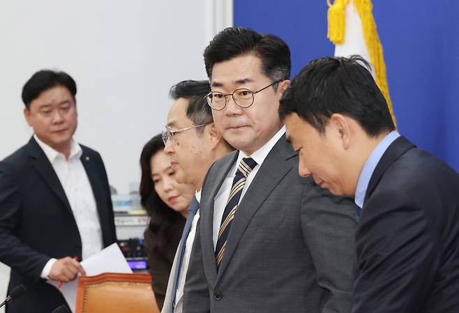 | ▲ 더불어민주당 박찬대 원내대표가 6일 국회에서 국정감사를 앞두고 기자간담회를 하기 위해 입장하고 있다. |