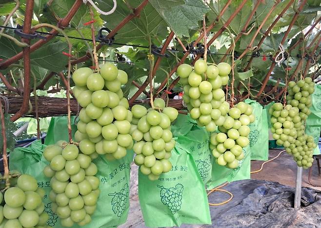 국내 많은 지역에서 샤인머스캣이 재배되는 가운데 경북 상주에서 셀레늄(Se)이라는 물질을 함유한 샤인머스캣이 처음 생산돼 화제다.
