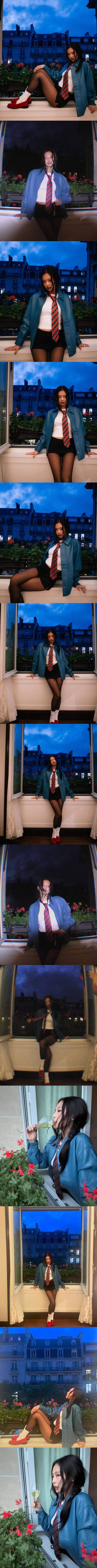 공개된 사진은 가죽 재킷, 짧은 치마, 그리고 스타일리시한 타이를 코디한 제니가 다양한 포즈를 취하고 있는 모습. 제니는 작은 얼굴과 완벽한 바디 라인을 자랑하며 독보적인 아름다움을 뽐내고 있다.