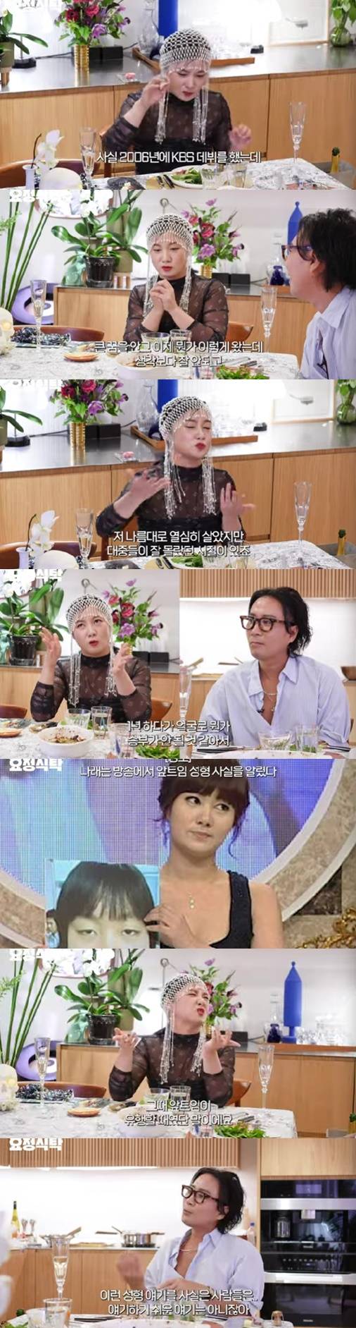 박나래는 "18세에 방송에 나왔지만 제대로 데뷔한 거는 타이틀을 받은 건 KBS 21기 공채다. 한참 있다가 '패션 NO.5'를 하다 '코미디 빅리그'로 옮겨갔다. 2006년에 KBS 데뷔를 했는데 큰 꿈을 안고 뭔가 이렇게 왔는데 생각보다 잘 안 되고 나름대로 열심히 살았지만 대중이 몰랐던 시절이 있다. 1년 하다가 얼굴로 승부가 안 될 것 같아 애매하게 고쳤다. 앞트임이 유행할 때였다"라며 성형 사실을 또 한번 고백했다.