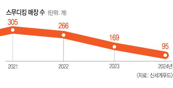 점포 수도 매년 쪼그라들었다. 2021년 305개에 달하던 스무디킹 점포 수는 2022년 266개로 줄었고 지난해에는 169개까지 감소했다.