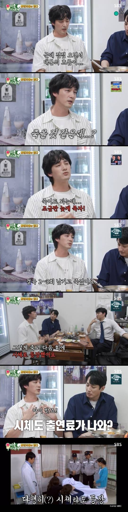 이어 "연기자들이 회당 출연료를 받아야 해서 한회라도 출연을 해야 한다. 내가 1번 남자주인공이니 나까지는 안 올 줄 알았다. 점점 오면서 대본의 흐름이 죽을 것 같더라. 150부까지 찍었는데 죽어도 되는데 좀 늦게 죽여줬으면 좋겠다 싶었다. 열심히 찍어서 돈을 벌어야 한다. 2, 3회 남기고 죽었다"고 덧붙였다.