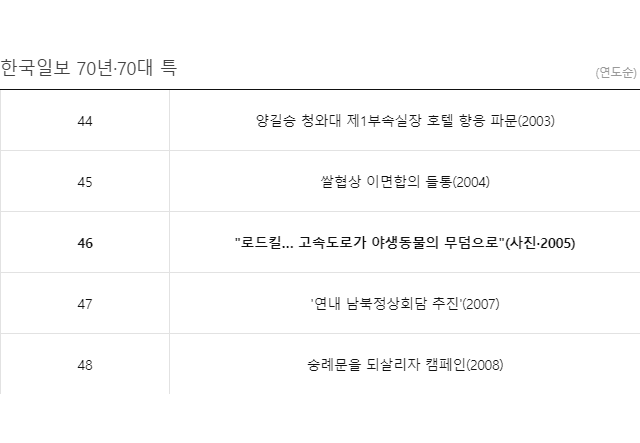 [한국일보 70년·70대 특종]<46>고속도로 로드킬 특종(사진·2005)