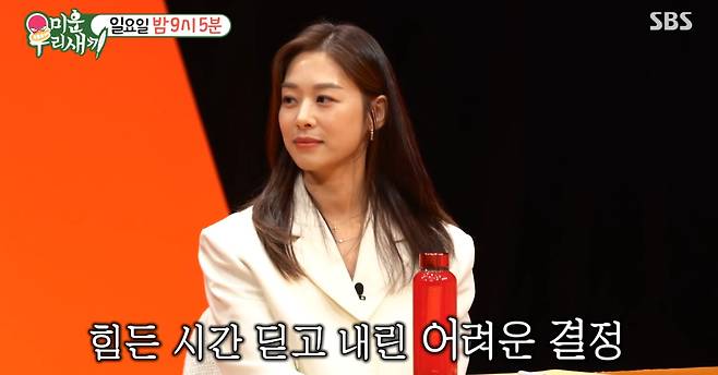 "가정을 지키겠다는 결정을 하셨다. 결심하게 된 결정적인 계기가…"라는 질문이 이어졌고, "용기내어 전하는 그녀의 이야기는?"이라는 자막이 더해졌다.