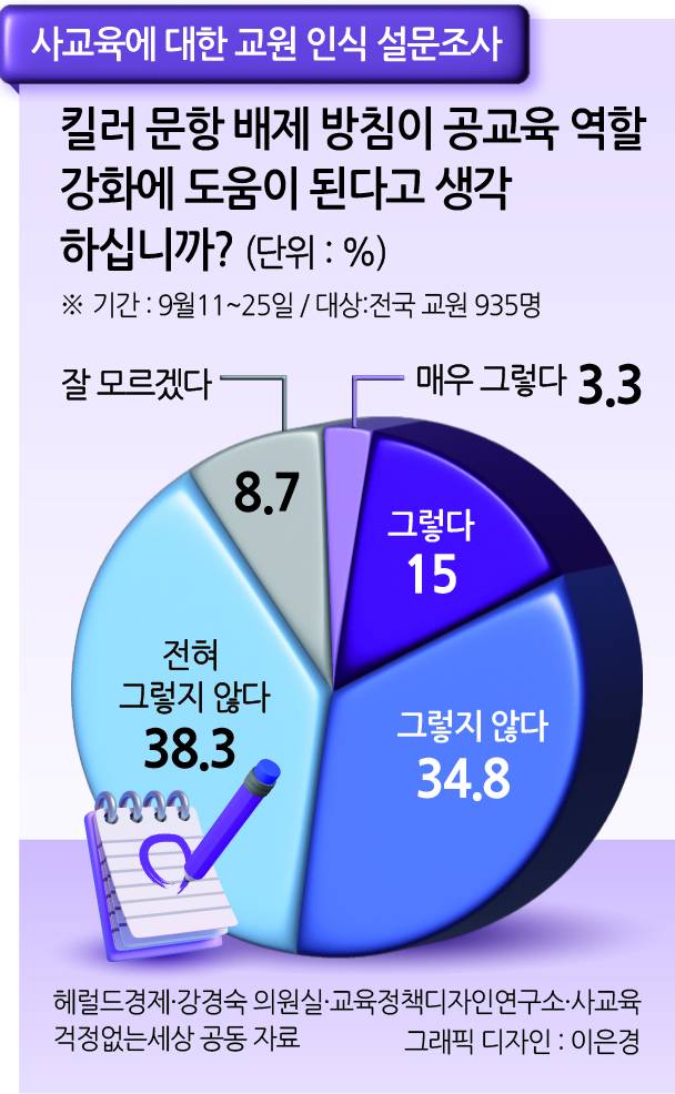 헤럴드경제는 국회 교육위원회 강경숙 조국혁신당 의원실 및 교육 시민단체 교육정책디자인연구소, 사교육걱정없는세상과 함께 전국 유·초·중·고등학교, 특수학교 교원 935명을 대상으로 지난 9월 11~25일 설문조사를 진행했다.