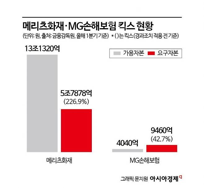 시장에서 평가하는 MG손보 매각 가격은 약 2000억~3000억원 수준이다. 올해 1분기 기준 MG손보의 지급여력비율(K-ICS·킥스)은 42.7%로 금융당국 권고치(150%)에 한참 못 미쳐 추가 자금 공급이 불가피하다. 인수 후 정상화를 위해 약 1조원의 자금조달이 필요할 것으로 예상된다. 예보가 최대 5000억원 규모의 공적자금을 지원한다고 하지만 지난해부터 내년까지 연결기준 당기순이익의 50%를 주주에게 돌려준다는 대원칙을 밝힌 메리츠금융 입장에서는 부담이 될 수밖에 없다. 우량자산만 선별해가는 P&A가 매력적일 수밖에 없는 이유다. 메리츠화재는 인수 방식이 M&A인지 P&A인지 아직 밝히지 않았지만 업계에서는 P&A 가능성을 높게 보고 있다. 메리츠화재의 지난 1분기 킥스는 226.9%로 MG손보 일부 자산과 부채를 충분히 흡수할 여력이 된다.