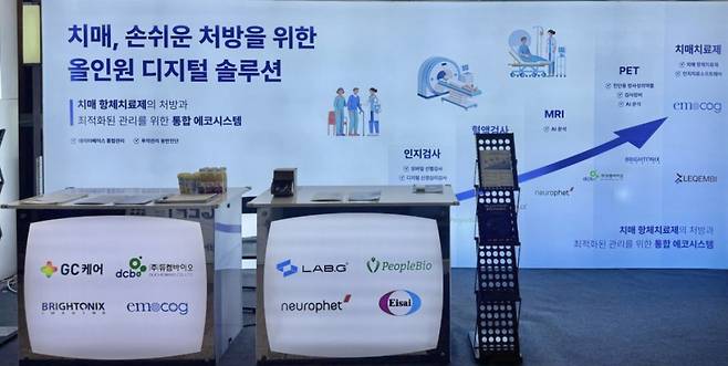현재 치매 관리 시스템은 인지 저하 시점을 조기에 포착하기보다 치매 증상이 많이 진행된 이후 치료와 케어가 이뤄지는 후행적 접근에 머물러 있다. 이번 통합 부스를 통해 8개 회사는 주관적 인지 저하(SCD)와 경도 인지 장애(MCI) 같은 초기 단계의 치매를 양전자 방출 단층 촬영(PET) 검사와 디지털 바이오 기술로 빠르고 간편하게 선별하고, 항체 치료까지 받을 수 있는 혁신적인 플랫폼을 홍보했다.