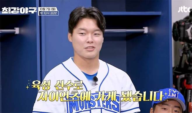 7일 선공개된 JTBC '최강야구'에서는 유태웅이 자신의 프로입단 소식을 전했다.