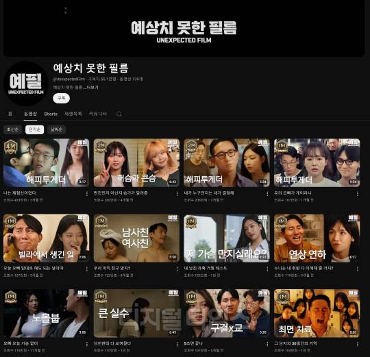 이외에도 '찐친인지 아닌지 슴가가 알려줌' '우리 오빠가 게이라니' '오늘 오빠 맘대로 해도 되는 날이야' '우리 아직 친구 맞지?' 등의 콘텐츠도 '예상치 못한 필름'을 대표하는 조회수 100만을 넘긴 B급 코미디 콘텐츠들이다.