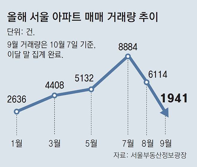 7월 정점을 찍었던 서울 아파트 거래량도 2개월 연속 줄어드는 추세다.