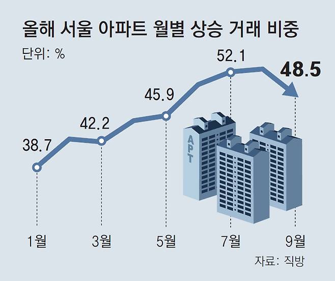 서울 아파트 상승거래 비중 48.5%… 4개월만에 절반 이하로