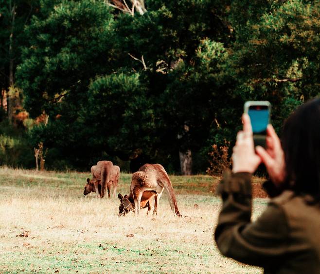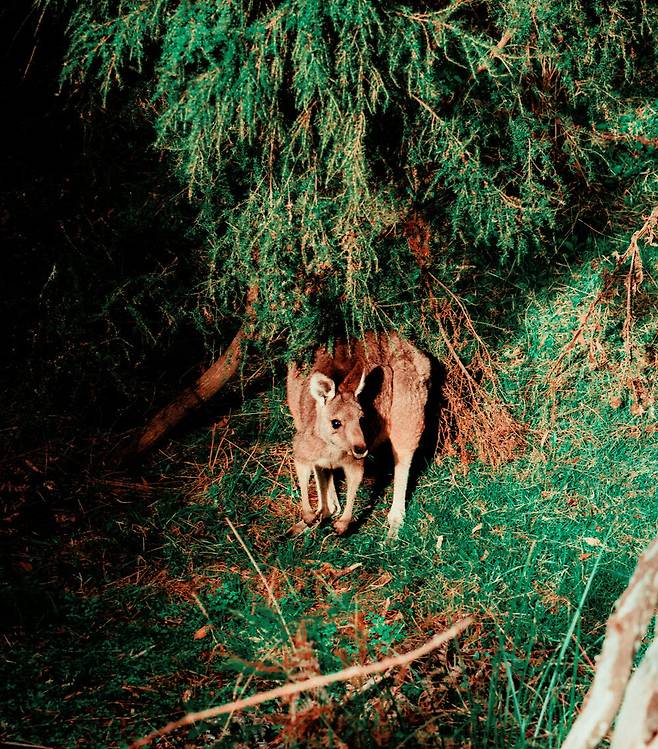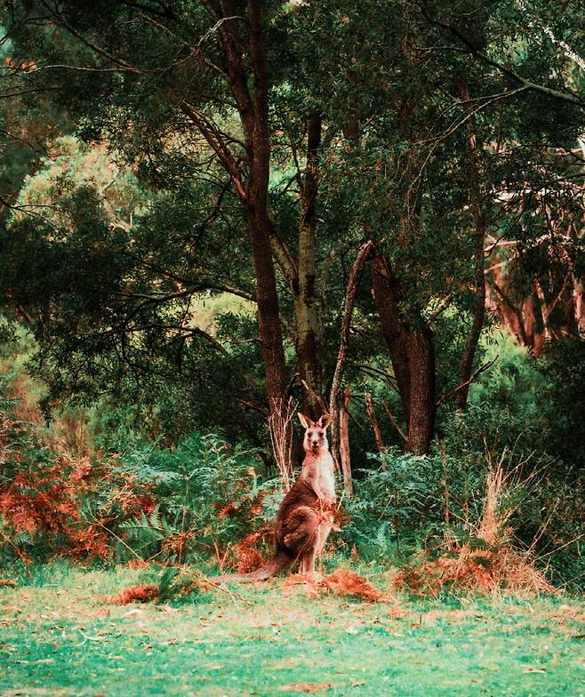 인터넷도 끊긴 호주의 깊은 숲속. 저 멀리 캥거루 떼가 말없이 이쪽을 응시한다.