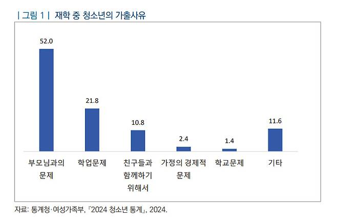 국회 입법조사처는 8일 ‘가정 밖 청소년이 쉼터에 입소하지 못하는 이유’라는 보고서를 통해 청소년쉼터 입소 절차에 대한 입법적 개선이 시급하다고 강조했다. 보고서에 따르면 2023년 실종 신고되거나 가출 경험이 있는 청소년 수는 약 13만명에 달한다. 이 가운데 상당수가 가정 내 학대, 폭력, 방임 등의 이유로 집을 나왔다. 여성가족부의 청소년쉼터 등을 이용한 위기 청소년에 대한 조사에서는 ‘부모님으로부터 심하게 맞은 경험’이 있는 청소년이 72%에 이르렀다.