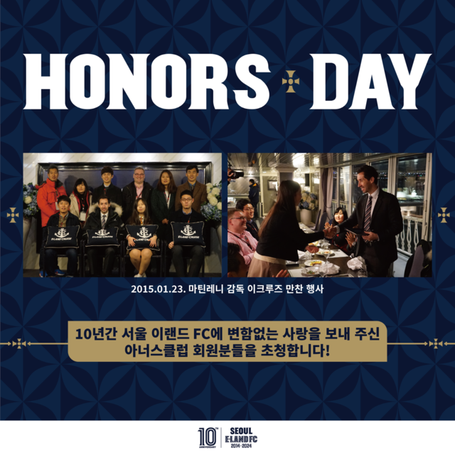 '아너스 클럽'은 서울 이랜드의 창단 첫 해인 2015년부터 2024년까지 10년 동안 변함없이 서울 이랜드의 시즌권을 구매한 팬들을 일컫는 표현이다.